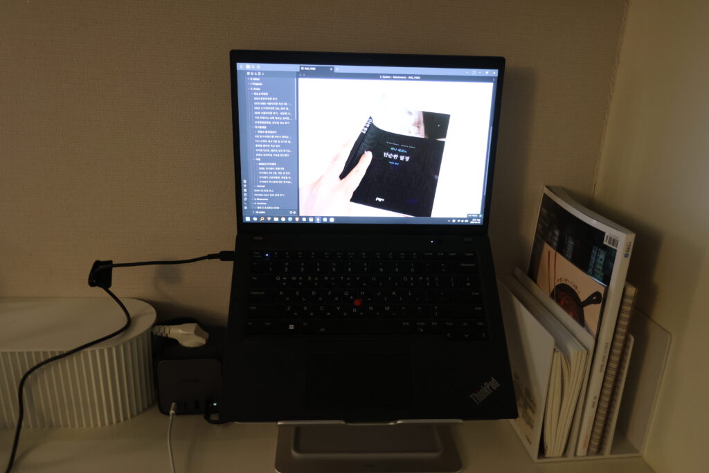 핵심은 회사에서도 메모할 수 있다는 점이다. 평일 9시간을 회사에서 보내고, 그 시간의 대부분을 컴퓨터 앞에 앉아 있다. 당연히 그 시간 동안 생각도 많이 하고, 아이디어도 많이 떠오른다. 그렇다면 떠오르는 생각을 컴퓨터로 바로 적는 게 가장 자연스럽다. 폰을 꺼내거나 웹 브라우저를 여는 것은 생각보다 높은 장벽이다. 물론 노션이나 다른 서비스도 대안이 될 수 있지만, 나는 옵시디언을 선호하니 그 선택지는 처음부터 없었다.
